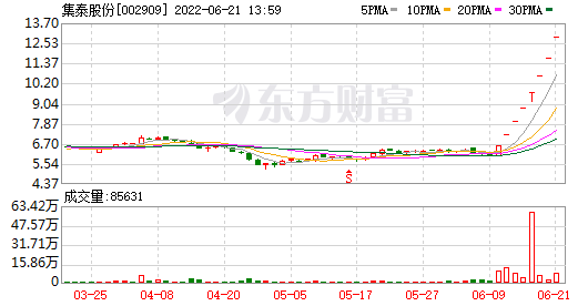 昨日(21日)上午,集泰股份觸及漲停,截至發稿,該股報12.86元,漲停板上封單超18萬手。也就是說,該股已連續漲停8天,成交額超8800萬元,換手率達1.91%,市值達47.94億元。