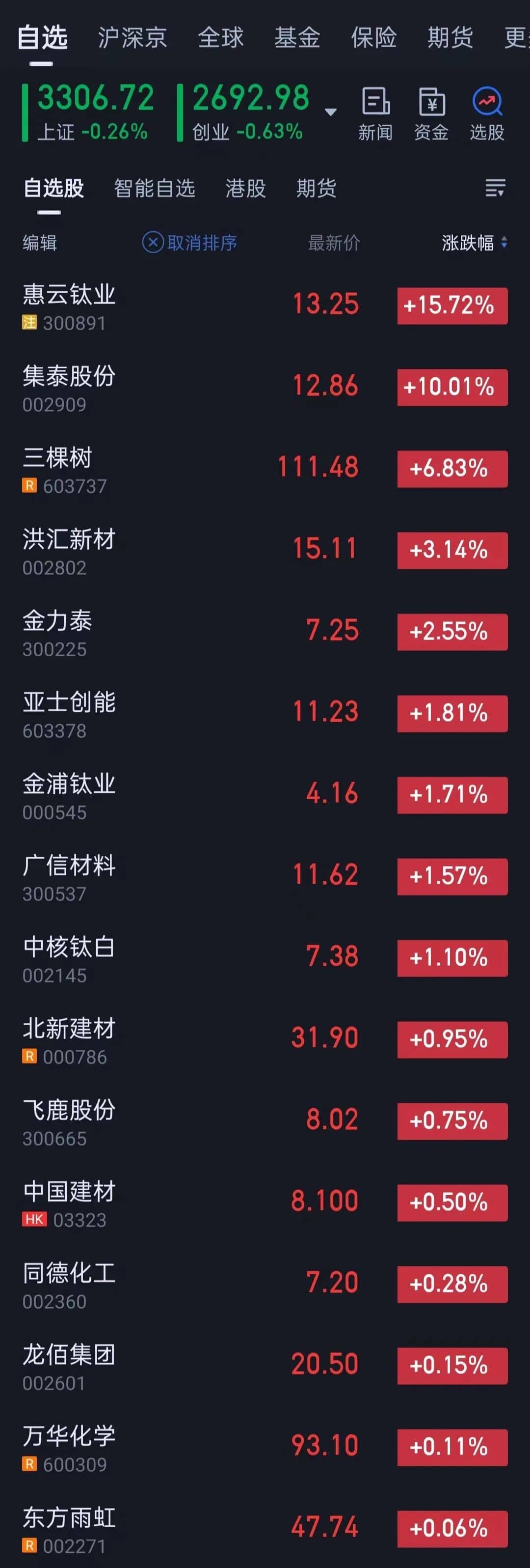 東方雨虹:日漲0.06%,收盤價47.74元。