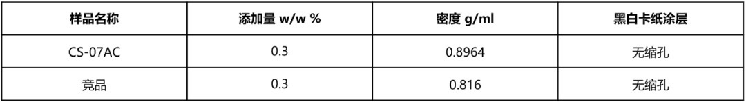 而在水性工業(yè)漆清漆中測(cè)試結(jié)果顯示,CS-07AC產(chǎn)品同等添加量性能優(yōu)于競(jìng)品,相容性與競(jìng)品無差異。