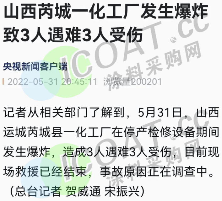 據涂料采購網了解,2022年年初以來,國內化工企業經歷了停產減產和錯峰生產等多重考驗,但在開開停停中,爆炸、泄漏、起火等化工事故頻發,給企業、行業、傷亡者及其家屬,乃至整個社會都帶來了極為不良的影響。