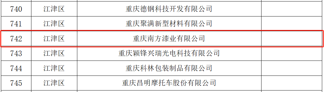 隨著社會的高速發展,更加創新、專精的發展方式受到重視,涂料化工行業也在這條道路上越走越遠。近日,涂料采購網從重慶市經濟信息委獲悉,2022年重慶市“專精特新”中小企業名單已正式出爐,全市共有1579家企業通過遴選入榜公示,江津區有108家企業成功入榜,新增數量在全市所有區縣中列第一。其中,重慶市南方漆業有限公司(以下簡稱“南方漆業”)憑借自身技術優勢和品牌建設榮耀上榜。