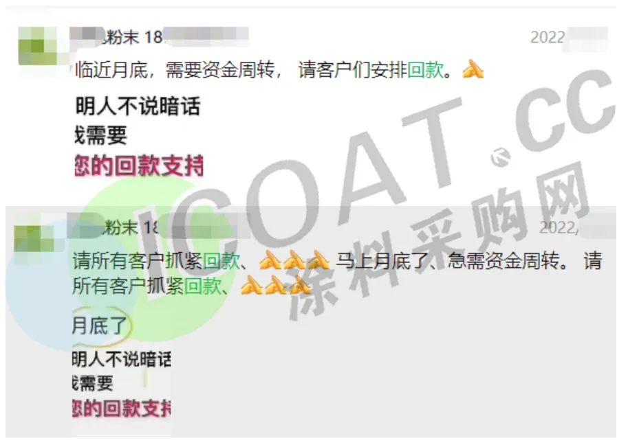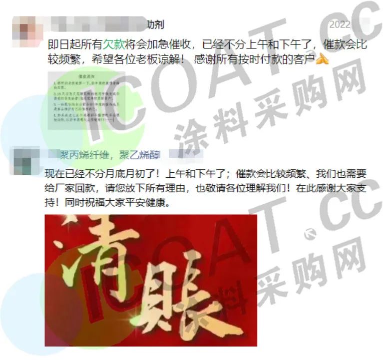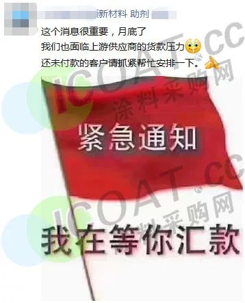 另有多家涂料、化工企業(yè)為了緩解貨款壓力,誠(chéng)懇請(qǐng)求未付款的客戶抓緊時(shí)間安排回款。