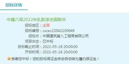 巴德士成功中標2022年中建八局(全國區域)乳膠漆聯采項目。