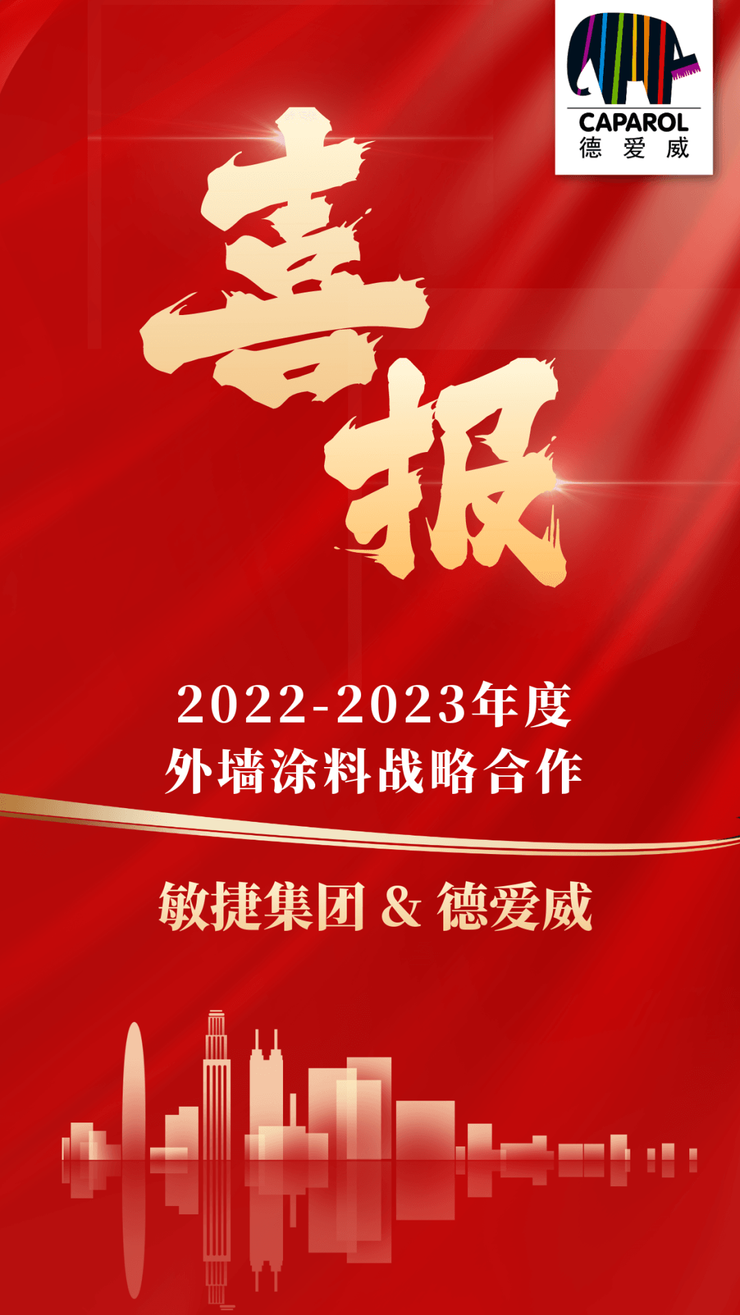 德愛威中標敏捷集團2022-2023年度外墻涂料戰略合作,雙方將通過此戰略合作,建立長期穩固的合作方式與合作模式。