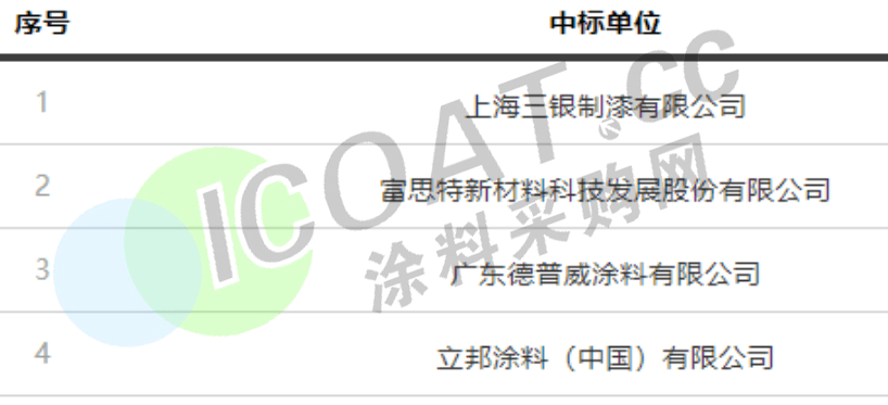 2022-2024年度新虹聯外墻涂料戰略聯采中標公告發布,上海三銀制漆有限公司、富思特新材料科技發展股份有限公司、廣東德普威涂料有限公司、立邦涂料(中國)有限公司中標。