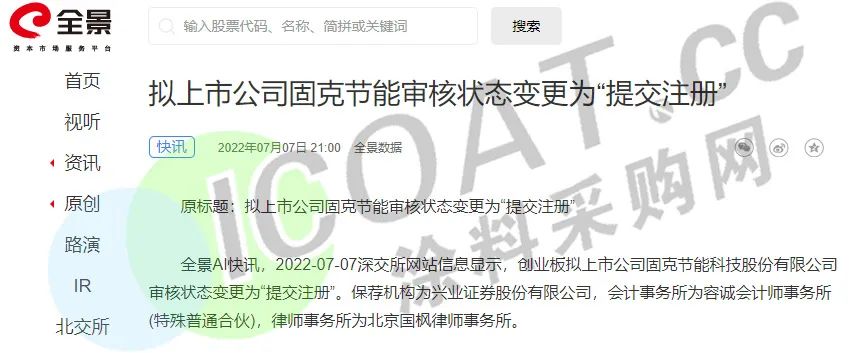 固克節能的IPO申請于2020年10月29日受理,同年11月23日“已問詢”,并于2021年8月4日過會,2021年10月29日提交注冊。2022年3月31日,創業板IPO審核狀態變更為“中止”,原因為“IPO注冊申請文件中記載的財務資料已過有效期,需要補充提交。”