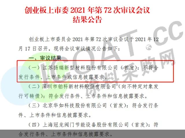 主要從事功能性涂料的研發、生產和銷售的揚瑞新材于2017年11月30日向證監會提交首次公開發行股票并在創業板上市的行政許可申請材料,并于2018年7月26日披露了招股說明書,2019年7月18日,當日IPO大考的揚瑞新材遺憾被否。2020年7月15日揚瑞新材的創業板IPO獲深交所受理,并于同年9月6日進入問詢階段。2021年12月17日晚間,揚瑞新材首發申請被否。