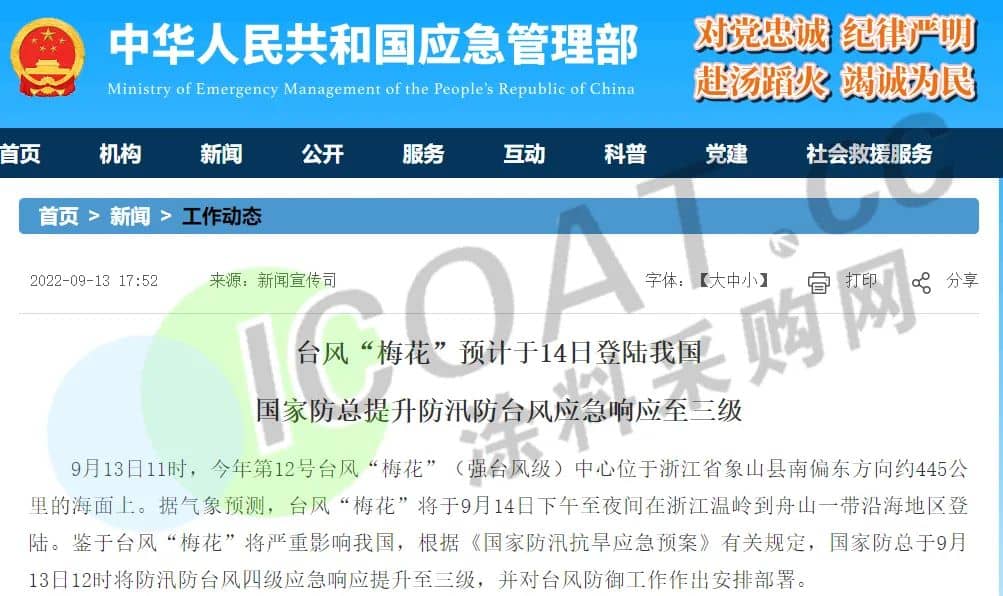 鑒于臺風“梅花”將嚴重影響我國,國家防總將防汛防臺風四級應急響應提升至三級,并對臺風防御工作作出安排部署。此外,山東、浙江、江蘇、上海等多地防汛辦下發通知要求做好“梅花”防御工作。并且視情啟動停課、停工、停運、停航、停園、停業“六停”措施,全力迎接“梅花”臺風的考驗。