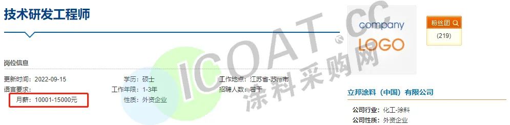 相較于普工3-4K的月薪或者300元的日薪而言,高級技術工種幾十萬甚至上百萬的薪資顯然誘惑力十足,但這并沒能有效緩解涂料行業“人才荒”的窘境,因為對于高薪人員的招聘門檻非常高,例如學歷在本科或碩士以上,工作年限為3-5年,甚至是10年以上,語言要求精通英語等。