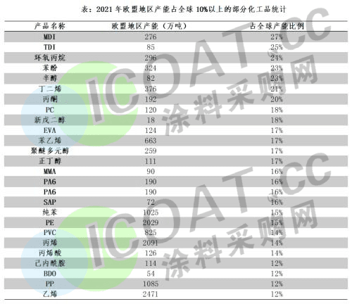 歐洲化工品銷售額為6280億歐元,僅次于中國位居全球第二。歐盟地區(qū)的重點化工品在全球的占比大多在15%-25%之間,這其中包括MDI、TDI、環(huán)氧丙烷等。這也就意味著,能源危機帶來的影響,不僅僅是在歐洲,而是已經(jīng)傳播到全球,且逐漸蔓延到化工下游的各個環(huán)節(jié)。