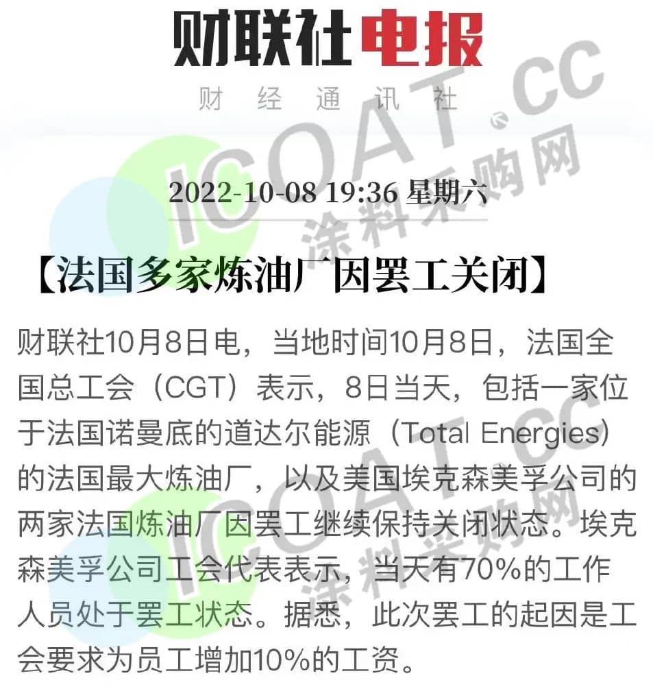 近日,法國3座煉油廠罷工,保持關閉狀態,其中,隸屬于道達爾能源公司的法國最大煉油廠已因持續罷工關閉近兩周時間……