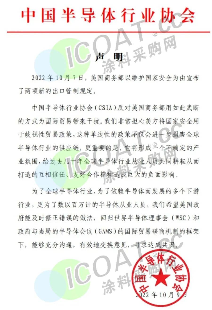 值得注意的是,對于美國商務部兩項新的出口管制規定的聲明,中國半導體行業協會對此發表聲明,為了全球半導體行業、為了依賴半導體而發展的多個下游行業,更為了數以百萬計的半導體從業人員,希望美國政府能及時修正錯誤的做法,回歸世界半導體理事會(WSC)和政府與當局的半導體會議(GAMS)的國際貿易磋商機制的框架下,能夠充分溝通,有效地交換意見,尋求達成共識。