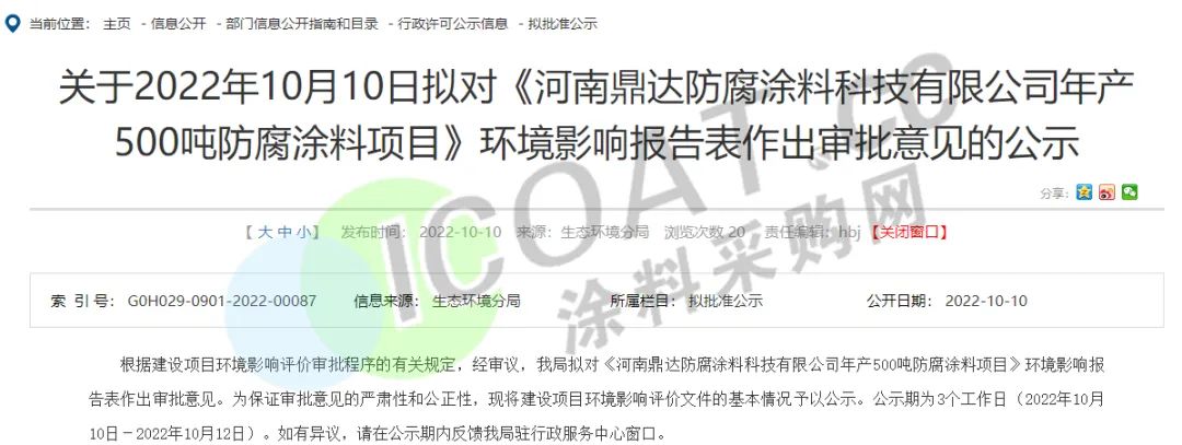河南鼎達防腐涂料科技有限公司:年產500噸防腐涂料項目,總投資260萬元。