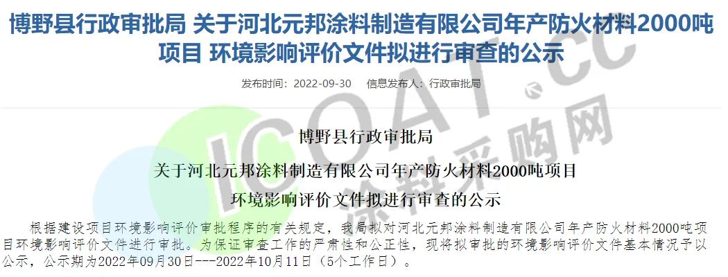 河北元邦涂料制造有限公司:年產防火材料2000噸項目,項目總投資300萬元。