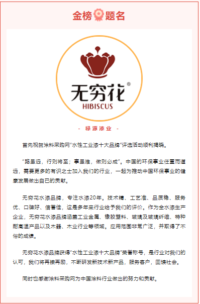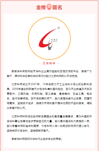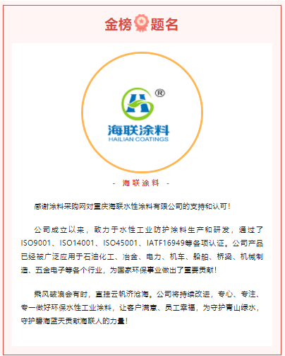 為推動水性工業漆行業健康發展,應機電設備、汽車配件、五金配件等多領域企業的邀請,涂料采購網聯合下游多個行業領域以及終端消費者,開展“2022年度水性工業漆十強”評選活動。此次評選活動通過實地調研、下游企業推薦、線上評選等多個環節,對目前國內水性工業漆企業發展情況進行全面了解。