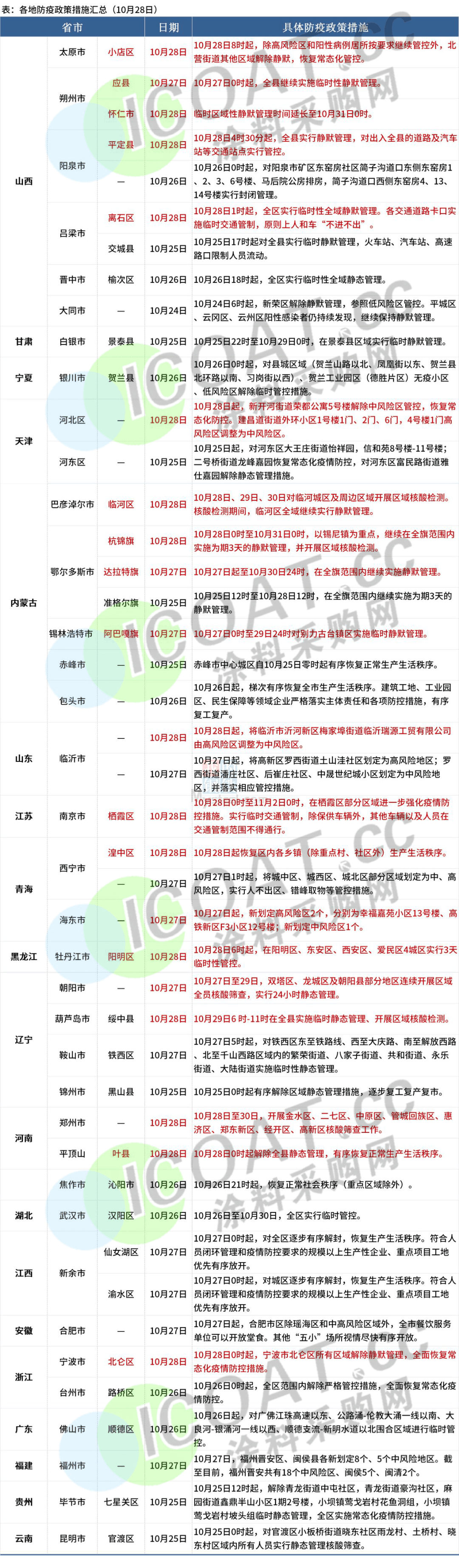 據(jù)涂料采購網(wǎng)不完全統(tǒng)計(jì),10個(gè)省份部分區(qū)域發(fā)布了疫情防控最新信息,山西朔州市應(yīng)縣10月27日0時(shí)起全縣繼續(xù)實(shí)施臨時(shí)性靜默管理;陽泉市平定縣10月28日4時(shí)30分起實(shí)行靜默管理,對(duì)出入全縣的道路及汽車站等交通站點(diǎn)實(shí)行管控。黑龍江牡丹江市10月28日6時(shí)起,在陽明區(qū)、東安區(qū)、西安區(qū)、愛民區(qū)4城區(qū)實(shí)行3天臨時(shí)性管控。內(nèi)蒙古鄂爾多斯市達(dá)拉特旗10月27日起至10月30日24時(shí),在全旗范圍內(nèi)繼續(xù)實(shí)施靜默管理……