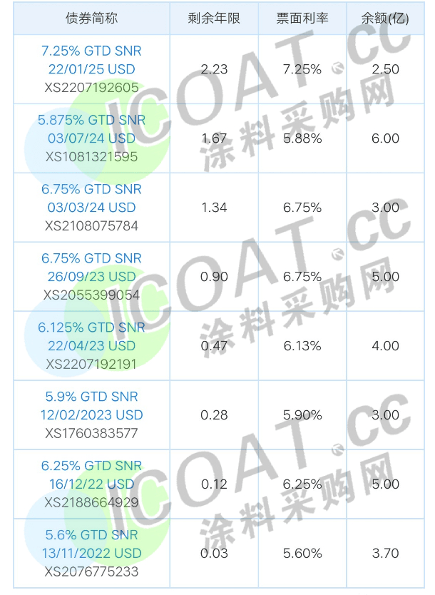 今年5月,綠地控股公告稱受疫情及行業逆風影響,公司6月到期的5億美元債尋求展期。目前綠地控股存續美元債9只,存續規模32.79億美元,其中大部分將于一年內到期,公司面臨集中兌付壓力較大。