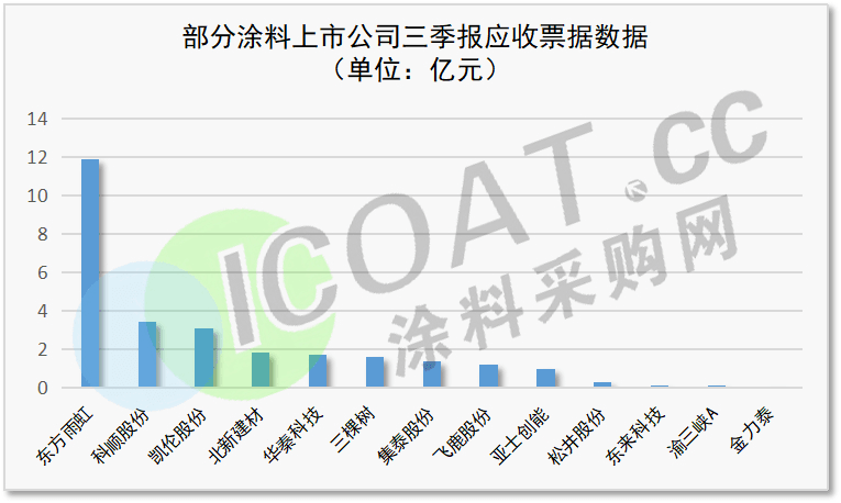 綜合涂料上市公司發布的三季報數據不難發現,十幾家涂料企業應收賬款累計350.55億元,應收票據累計27.58億,應收票款合計378億,不可謂不驚人。