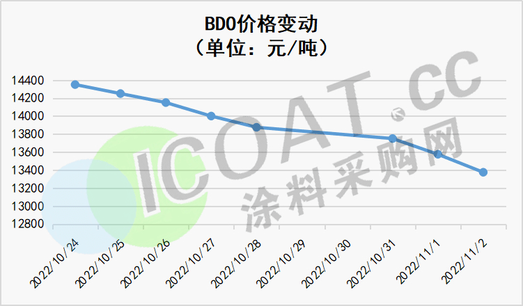 BDO從14350元/噸跌至13375元/噸,報價7連跌,累計下跌975元/噸,跌幅6.79%。