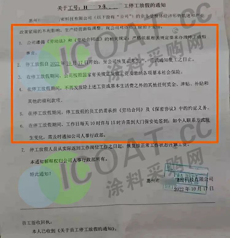 廣東惠州某精密科技企業(yè)表示,自10月17日起停工放假,在停工放假期間,工作日每天10時(shí)與15時(shí)需到大門(mén)保安處簽到。
