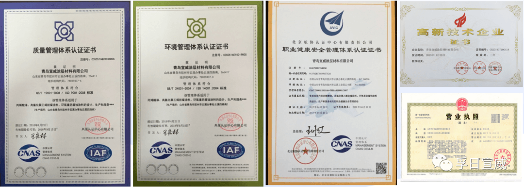 自成立以來,孚日宣威新材料持續(xù)扎根領(lǐng)域,創(chuàng)新研發(fā),其研發(fā)生產(chǎn)的具有自主知識產(chǎn)權(quán)的特種油漆分別獲得山東省科技進步一等獎和二等獎,中國石油和化學(xué)工業(yè)協(xié)會科技進步一等獎和二等獎、三等獎,軍隊科技進步二等獎,青島市科技進步一等獎、二等獎和三等獎等。目前孚日宣威新材料具有特種涂料生產(chǎn)經(jīng)營許可,通過了ISO9001質(zhì)量管理體系、ISO14001環(huán)境管理體系認證、 ISO18001職業(yè)衛(wèi)生健康管理體系認證。申請發(fā)明專利超過40項,現(xiàn)已成功獲得授權(quán)十余項。