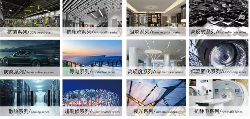 據涂料采購網了解,睿智環保的轉印粉末涂料產品在粉末涂料行業享有第一名的盛譽。除轉印粉末涂料之外,睿智環保的產品板塊還涉及單色粉末涂料、金屬粉末涂料、功能性粉末涂料。產品矩陣日趨多元使得睿智環保一路做大做強,現如今穩居全國粉末涂料前四名的位置。眾多高質量產品在門窗(五金)、建筑、新能源、家裝、汽車零配件、家電、工程機械、IT等多個領域應用廣泛。