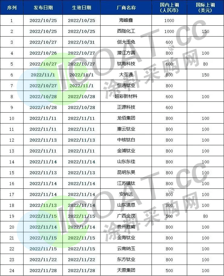價格下滑35%24家鈦白粉發函調漲全線“失效”
