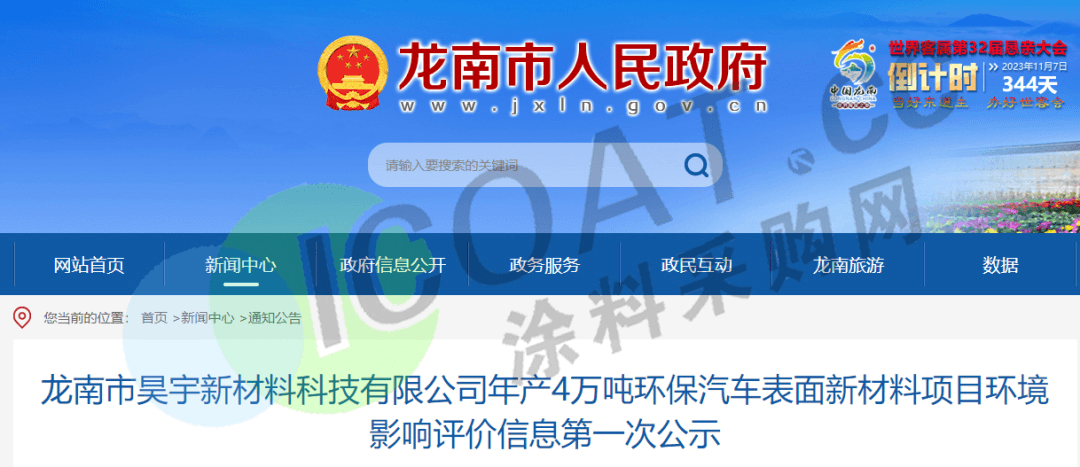 龍南市昊宇新材料年產(chǎn)4萬噸環(huán)保汽車表面新材料項(xiàng)目公示,項(xiàng)目預(yù)計(jì)地面積30694平方米,建成后可年產(chǎn)水性汽車涂料6000噸等。