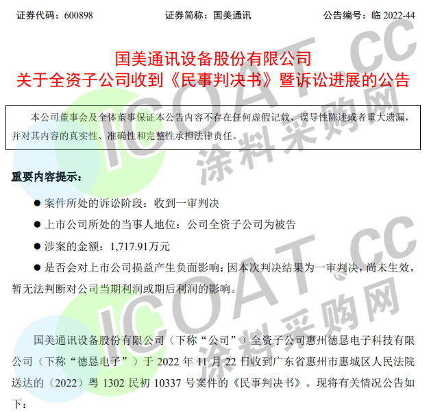 據公開資料,原告大連龍寧科技有限公司于2022年7月對德懇電子提起訴訟,要求德懇電子向大連龍寧支付拖欠貨款1636.11萬元,及逾期付款的違約金81.81萬元(暫計至2022年4月1日)。