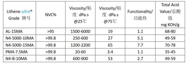 此外,LitheneTM液態聚丁二烯也是昕特瑪重磅產品之一。據涂料采購網了解,LitheneTM是昕特瑪研發的一種100%活性、高不飽和液體聚丁二烯,具有合理的分子量和微結構范圍。它們是具有活性的、粘性液體,具有優異的低溫柔韌性、高電阻和疏水性。它們與烴類溶劑和許多橡膠具有良好的相容性,使得它們在各種環境、紫外線和熱固化應用中用途極為廣泛。