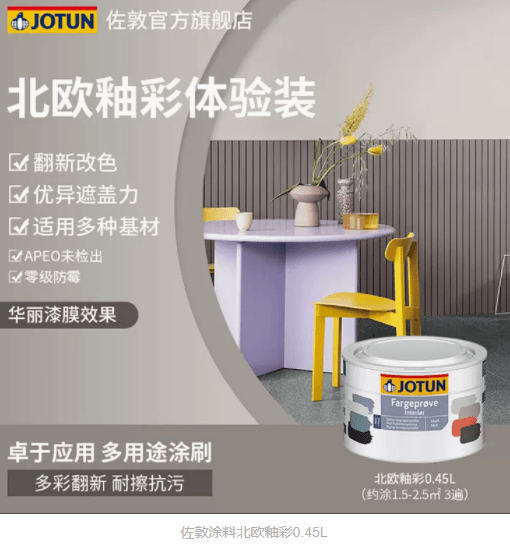 立邦100G小小漆數(shù)據(jù)顯示,0.5L的小罐漆可涂刷3個平米,可以滿足時換時新的需求,也可以進行局部修補,同時也打破了多年來涂料的涂刷必須由專業(yè)人員施工的限制,滿足了C端用戶的需求。