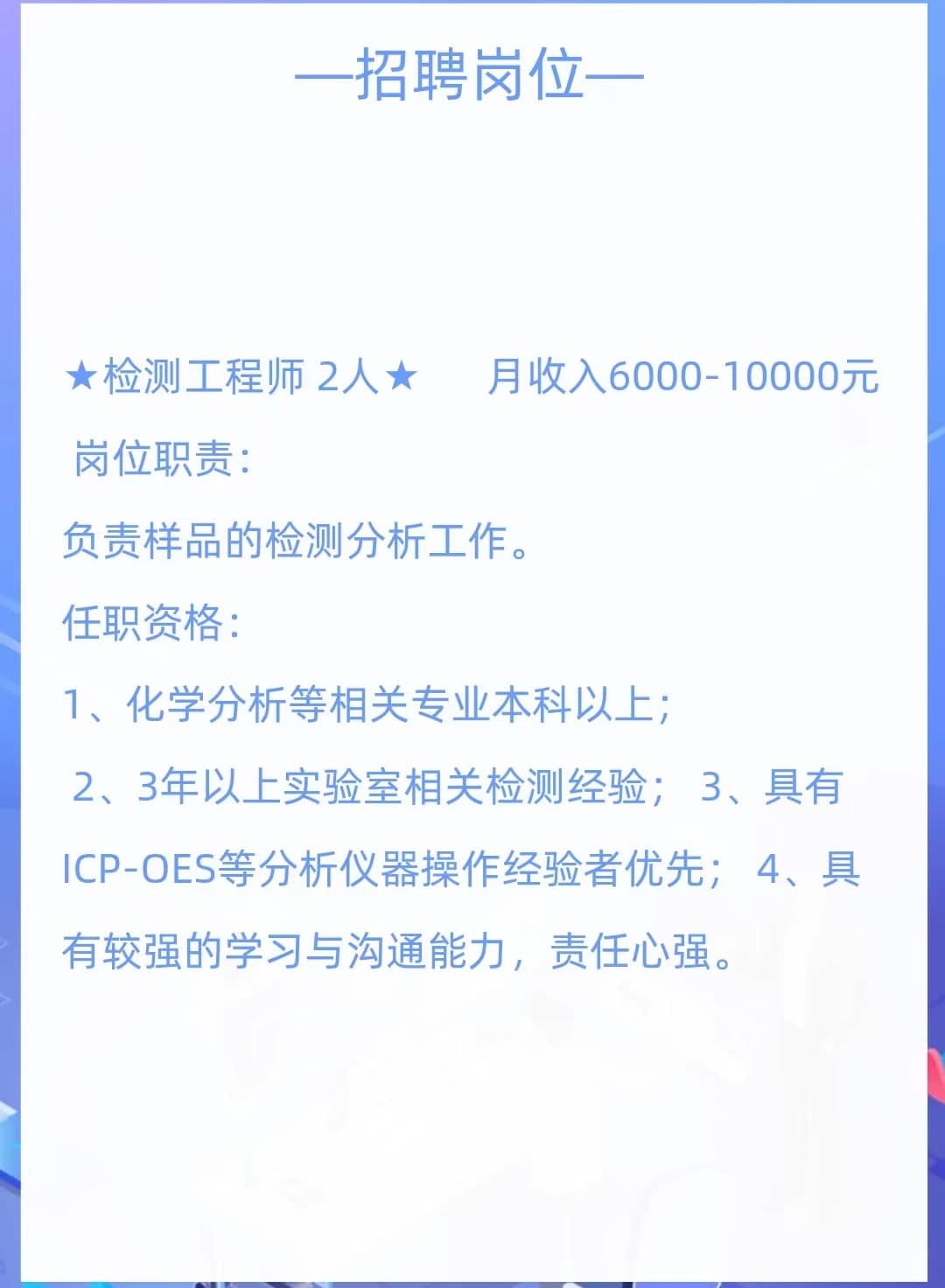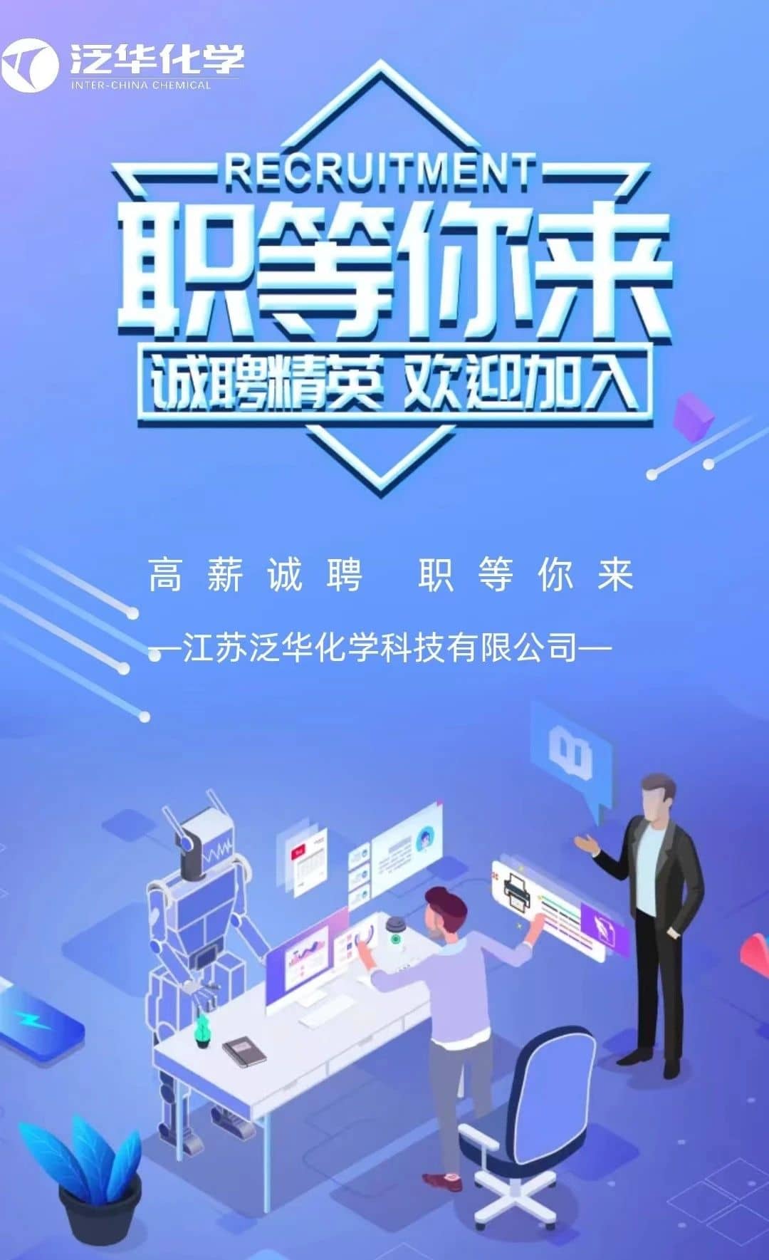 近日,江蘇泛華化學科技有限公司發布招聘啟事,招聘內貿業務員 2人、檢測工程師 2人。
