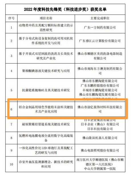 《鋁合金制品用綠色節(jié)能粉末涂料關(guān)鍵技術(shù)及產(chǎn)業(yè)化應(yīng)用》是佛山市涂億裝飾材料科技有限公司、廣東興發(fā)鋁業(yè)有限公司、佛山市三水鳳鋁鋁業(yè)有限公司、廣東省科學院工業(yè)分析檢測中心、佛山科學技術(shù)學院共同開發(fā)和應(yīng)用的技術(shù)成果轉(zhuǎn)化項目。
