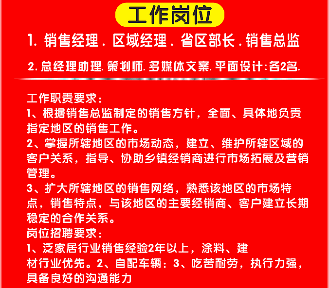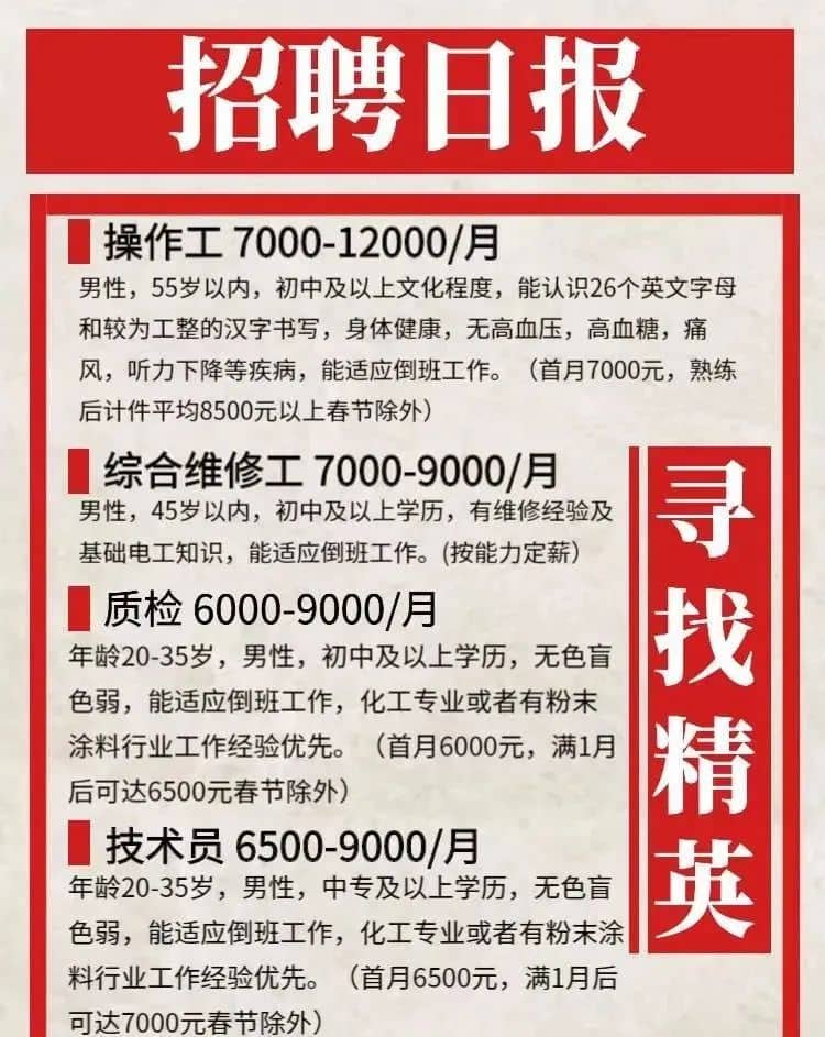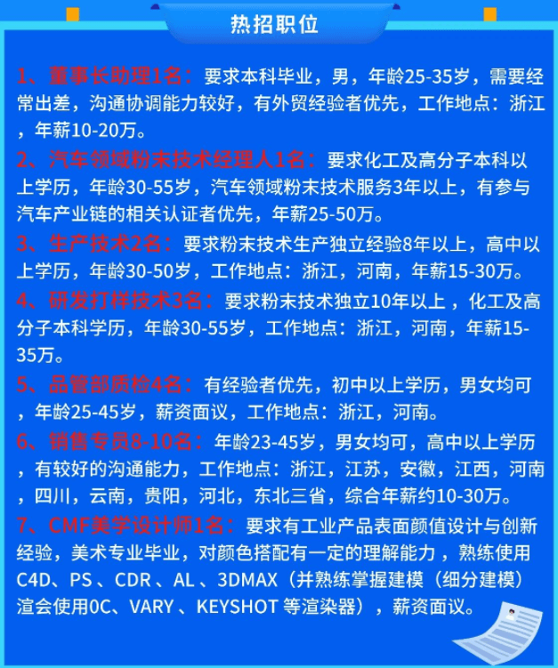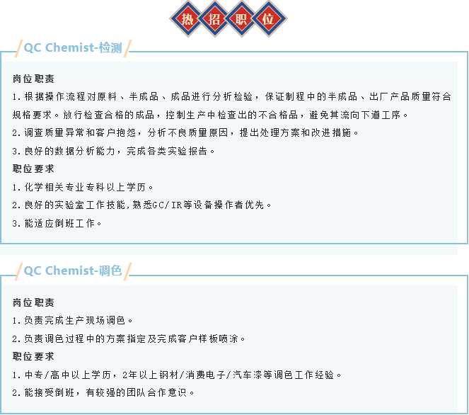 如果您的企業(yè)需要招聘人才,或是您有多年涂料行業(yè)經(jīng)驗(yàn),滿懷一腔熱血為涂料行業(yè)出一份力,歡迎入駐本平臺(tái)人才板塊,更多機(jī)會(huì)只在此刻,你還在等什么?