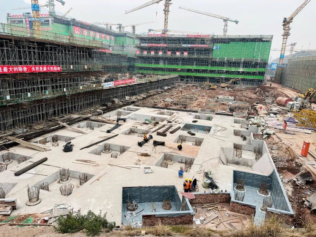 該工程建成后將成為中國(廣西)自由貿(mào)易試驗區(qū)地標性項目,2022年底科順承建的東塔防水項目完工,春節(jié)后陸續(xù)進場,火速開展地下室底板施工。