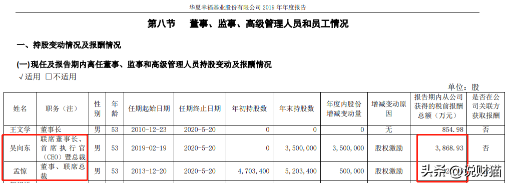 到2019年時(shí),孟驚的總報(bào)酬有2021萬元,而空降的吳向東,當(dāng)年的報(bào)酬達(dá)到3869萬元。