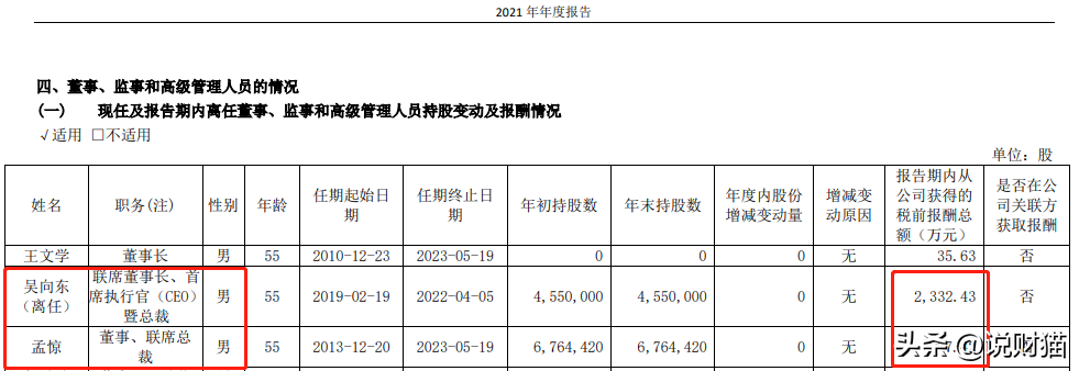 孟驚只是吳向東薪酬的一半多點(diǎn)。