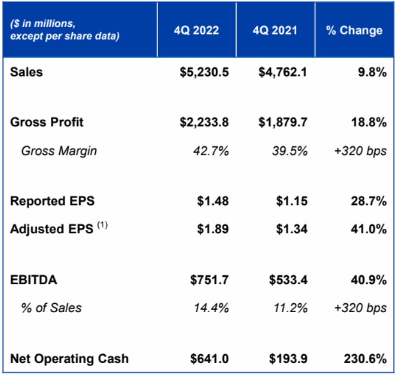 另外,據財報顯示,2022年第四季度宣偉合并凈銷售額達52.3億美元,同比增長9.8%。宣偉創造創紀錄的全年銷售總額,強勁的第四季度業績功不可沒!