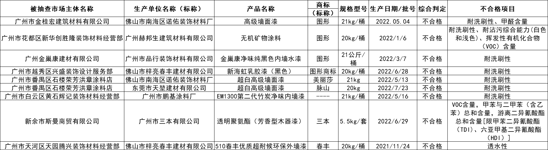 近日,廣州市市場(chǎng)監(jiān)督管理局公布了多個(gè)品類的涂料產(chǎn)品抽檢結(jié)果。