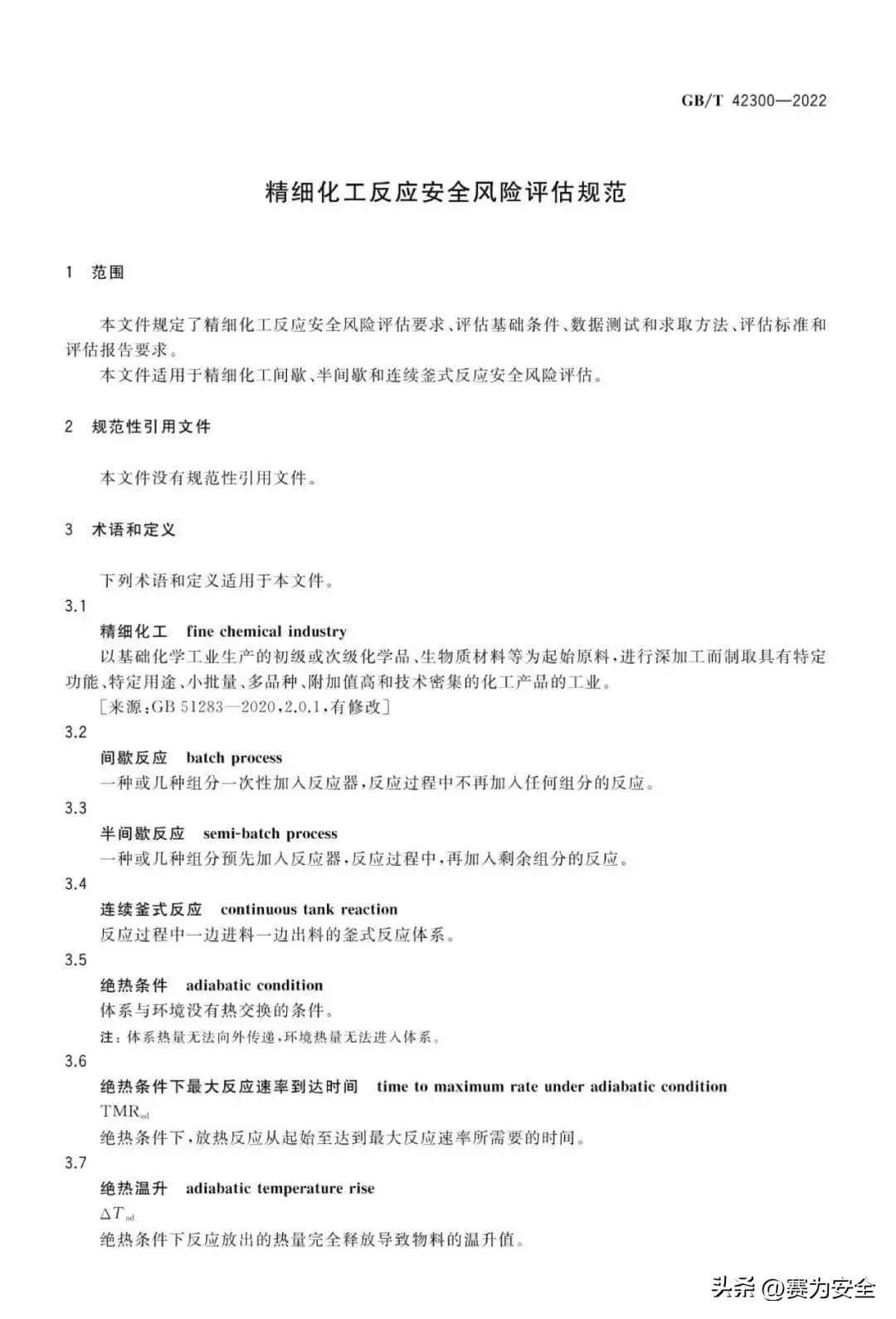 《精細(xì)化工反應(yīng)安全風(fēng)險(xiǎn)評(píng)估規(guī)范》