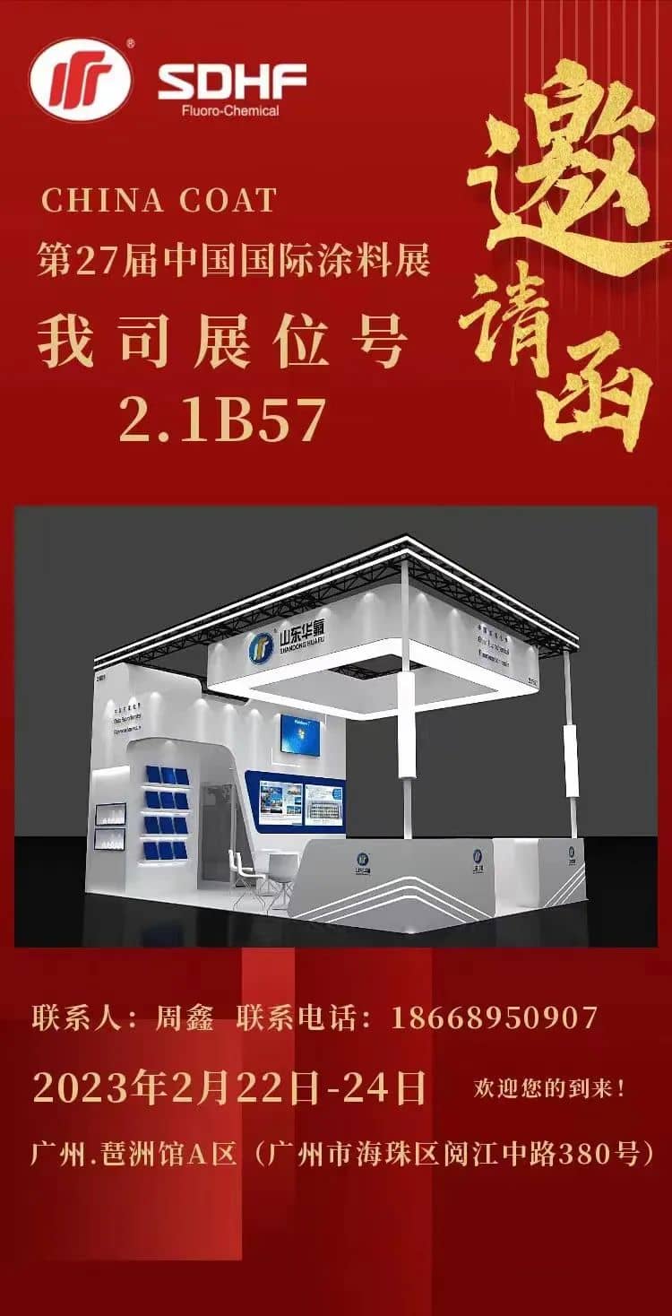 第二十七屆“中國國際涂料展ChinaCoat”將于2023年2月22~24日在廣州 • 中國進出口商品交易會展館舉行。華氟化工誠摯邀請行業伙伴出席參觀企業展臺:2.1B57。憑借多年來的技術積累與豐富經驗,華氟化工立足于中國涂料行業市場,不斷提供各類具有優異性能的原材料產品。此次,華氟化工將展出多個新產品,為行業帶來更多高性能的可持續解決方案,以滿足行業不斷升級的市場需求及性能期待。
