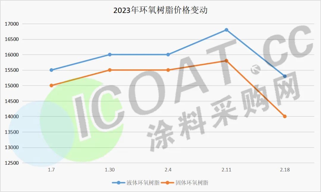 年初以來,固體環氧樹脂報價上漲800元/噸左右,液體環氧樹脂上漲1300元/噸左右,但2月中旬起,價格開始下滑,固體環氧周內下跌700元/噸左右,液體環氧價格下跌1000元/噸左右。其上游原材料環氧氯丙烷2月以來價格下跌394元/噸,跌幅4.35%,雙酚A價格下滑316元/噸,跌幅3.08%,上游雙原料的價格難以對環氧樹脂行業的報價起到支持作用。