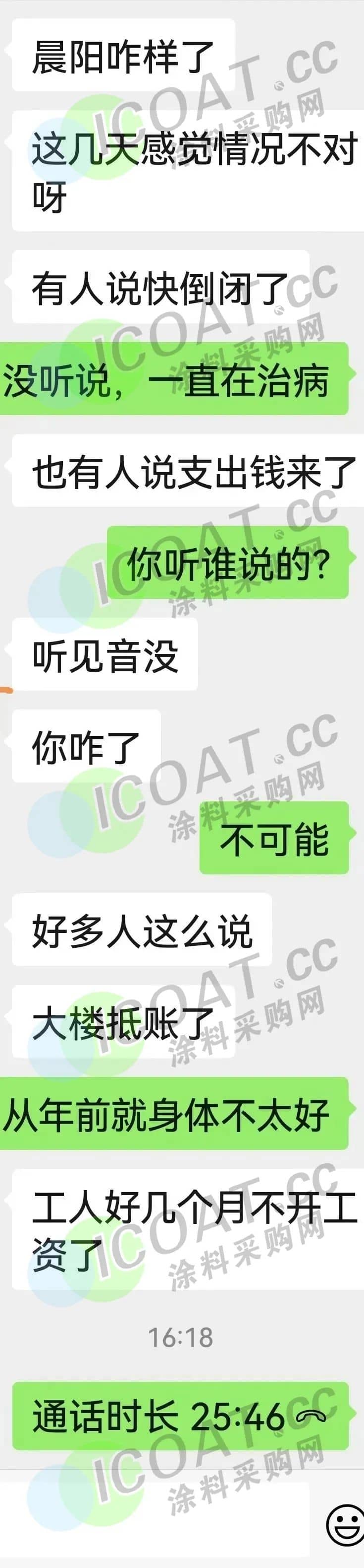 還有人表示,聽到一些風(fēng)聲,是不是晨陽水漆已經(jīng)倒閉了,工人也已經(jīng)不再開工了呢?