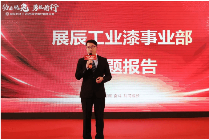 工業(yè)漆事業(yè)部總經(jīng)理張君先生,分享了展辰工業(yè)涂料逆風(fēng)飛揚(yáng)的成長歷程,介紹了產(chǎn)品體系、應(yīng)用領(lǐng)域與項(xiàng)目案例,對2023年的形勢與機(jī)會進(jìn)行了分析,從平臺、產(chǎn)品、渠道、市場等方面進(jìn)行了全面的分享,號召經(jīng)銷商伙伴們堅(jiān)持長期主義,在工業(yè)涂料的廣闊天地里創(chuàng)造星辰大海!