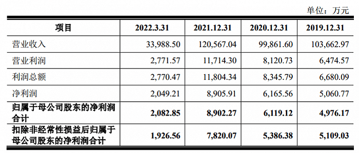數(shù)據(jù)顯示,2019年、2020年、2021年、2022年一季度公司營收分別為10.37億、9.99億、12.6億、3.4億,歸母凈利潤分別為0.5億、0.61億、0.89億、0.21億,其中,2020年、2021年歸母凈利分別大幅增長22.97%、45.48%。