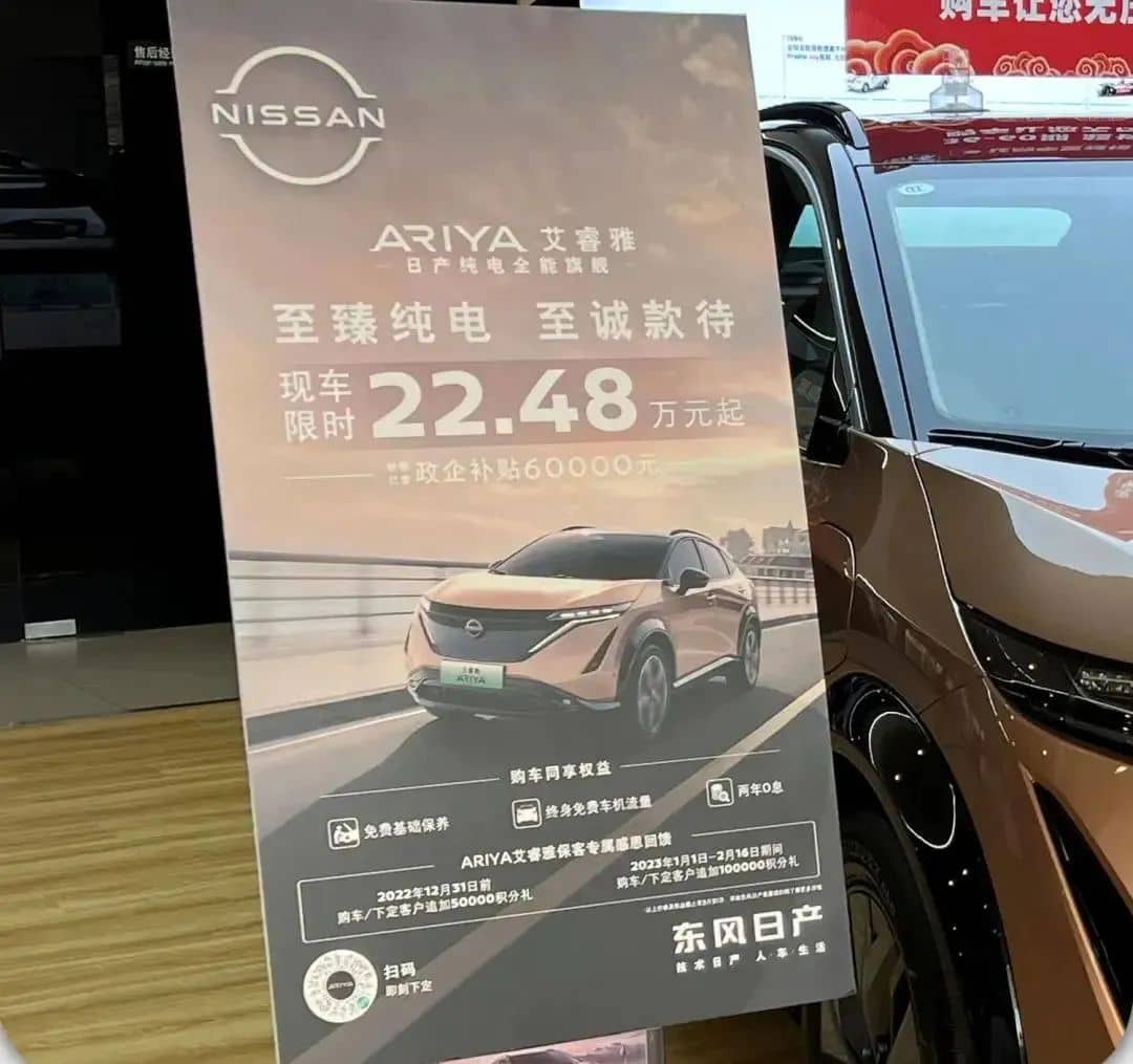 日產純電SUV ARIYA 艾睿雅:以“政企補貼”形式限時優惠6萬元。