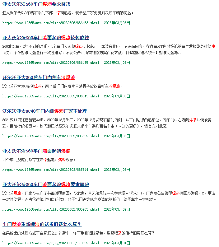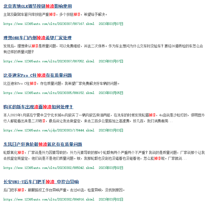 除此之外,在網絡平臺不少消費者投訴,多個知名品牌汽車掉漆、爆漆,但反饋無效,希望得到重視和處理。還有不少車主集體維權,希望廠家能給一個合理的解決方案。
