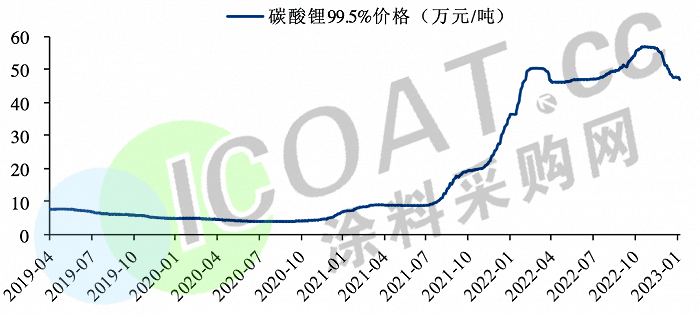 跌價行情已傳導到上游鋰礦產業鏈,鋰輝石精礦下跌20美元/噸,目前價格為5000美元/噸,均價較去年底的高位價格跌幅在10%左右。