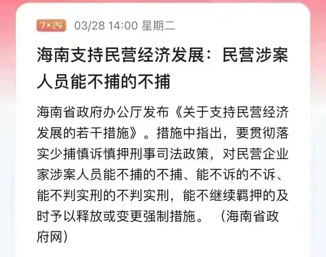 對于民營企業的大力支持,海南省并不是個例。近期,多個省份陸續作出鼓勵和支持民企的部署,湖南省提出“持續抓好‘湘商回歸’等工作,鼓勵支持民營經濟和民營企業發展壯大”;河北省提出“切實落實‘兩個毫不動搖’,優化民營企業發展環境”;遼寧省提出“促進民營經濟發展壯大,大力吸引外企來遼落戶,形成大企業頂天立地、中小企業鋪天蓋地的良好局面”……