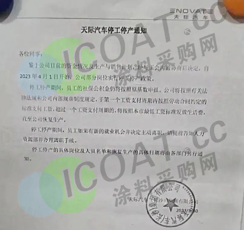 近日,前身為樂(lè)視汽車(chē)的天際汽車(chē)發(fā)布通知稱(chēng),鑒于公司目前的資金情況及生產(chǎn)與銷(xiāo)售計(jì)劃,自2023年4月1日開(kāi)始,公司部分崗位實(shí)行停工停產(chǎn)政策。